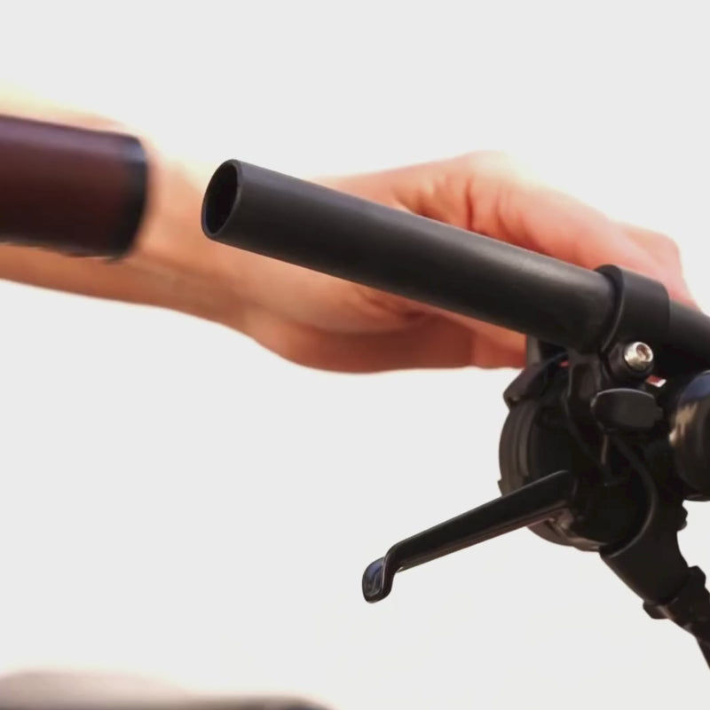 Video showing both Leather Handlebar Grips for Brompton bicycle featuring close-up of the leather and beech wood plugs