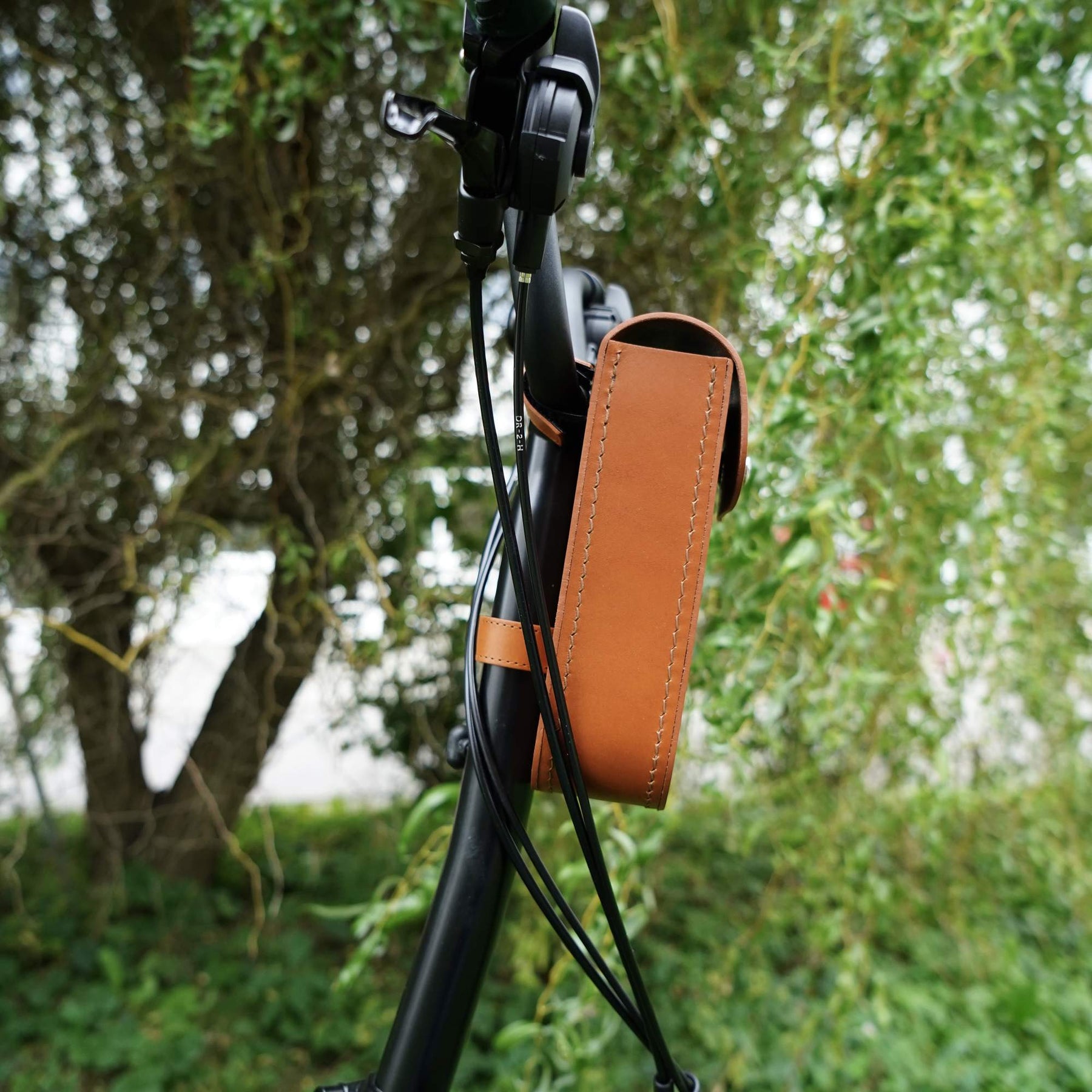 Brašna se k řídítkům připevňuje pomocí tří kožených pásků na suchý zip – dvou na řídítka a jednoho na představec. Stačí je jednoduše omotat a pevně utáhnout, aby taška držela bezpečně na místě.